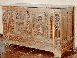 Die beherrschende Kunstgattung der Gotik war die Architektur. Sie setzte mit ihren in den Himmel strebenden Kathedralen Maßstäbe, die auch im profanen Bereich entscheidenden Einfluß ausübten. Die charakteristische Einzelform war der Spitzbogen. Er fand auch in der Möbelkunst seine Verwendung, z.B. an der gotischen Truhe oder am Spätgotischen Stollenschrank. |