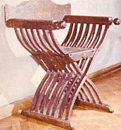 Ulmer Fassadenschrank um 1550 (Bild oben) Scherenstuhl aus Tirol um 1500 (Bild